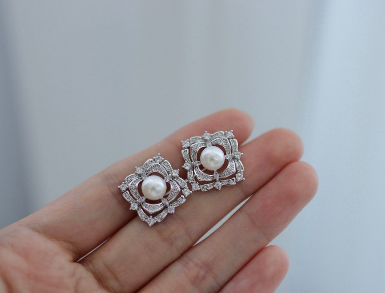 成为第一个“High-Quality Natural Pearl Stud Earrings, 14K Gold-Plated, Vintage Square Lace Edge Inlaid with Zircons, 7mm Ultra-Lustrous & Highly Plump Pearls” 的评价者