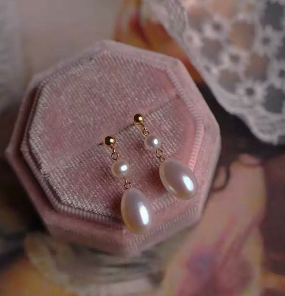Small teardrop-shaped baroque freshwater pearls, with a minimalist design that’s elegant and vivid. The warm luster of the pearls shimmers in the light, making it an exquisite touch perfect for daily wear and casual social occasions.