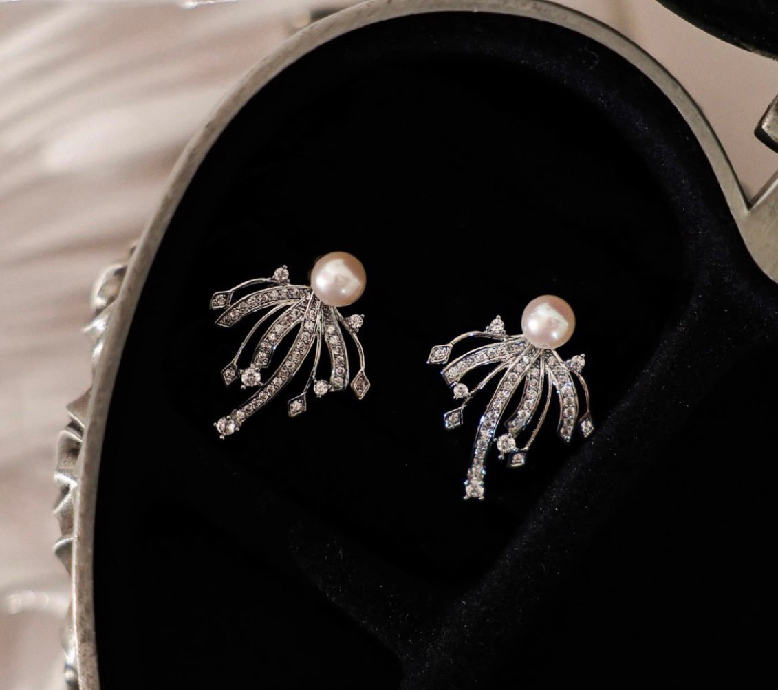 With natural freshwater pearls as the base, the zircon-pavé metal branches bloom into a firework shape all around. The bright starlight outlines an elegant and romantic silhouette, making it the finishing touch for banquet looks, brides’ and bridesmaids’ styling—romantic and dazzling.