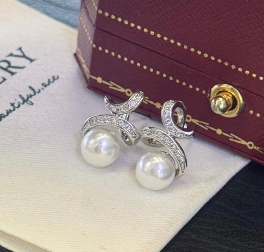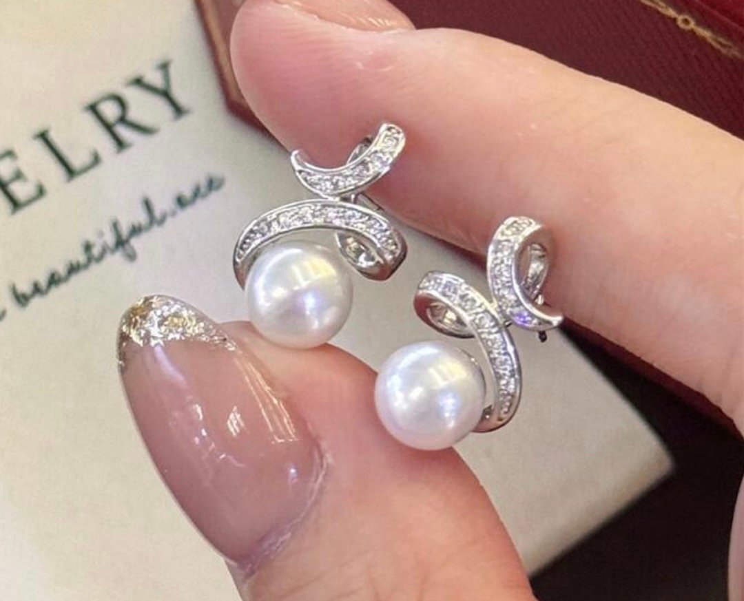 The streamlined knotted design is paired with pavé-set zircons, featuring handpicked natural freshwater pearls. The silver-plated base is hypoallergenic, and the light luxury sparkling design suits both daily wear and banquets.