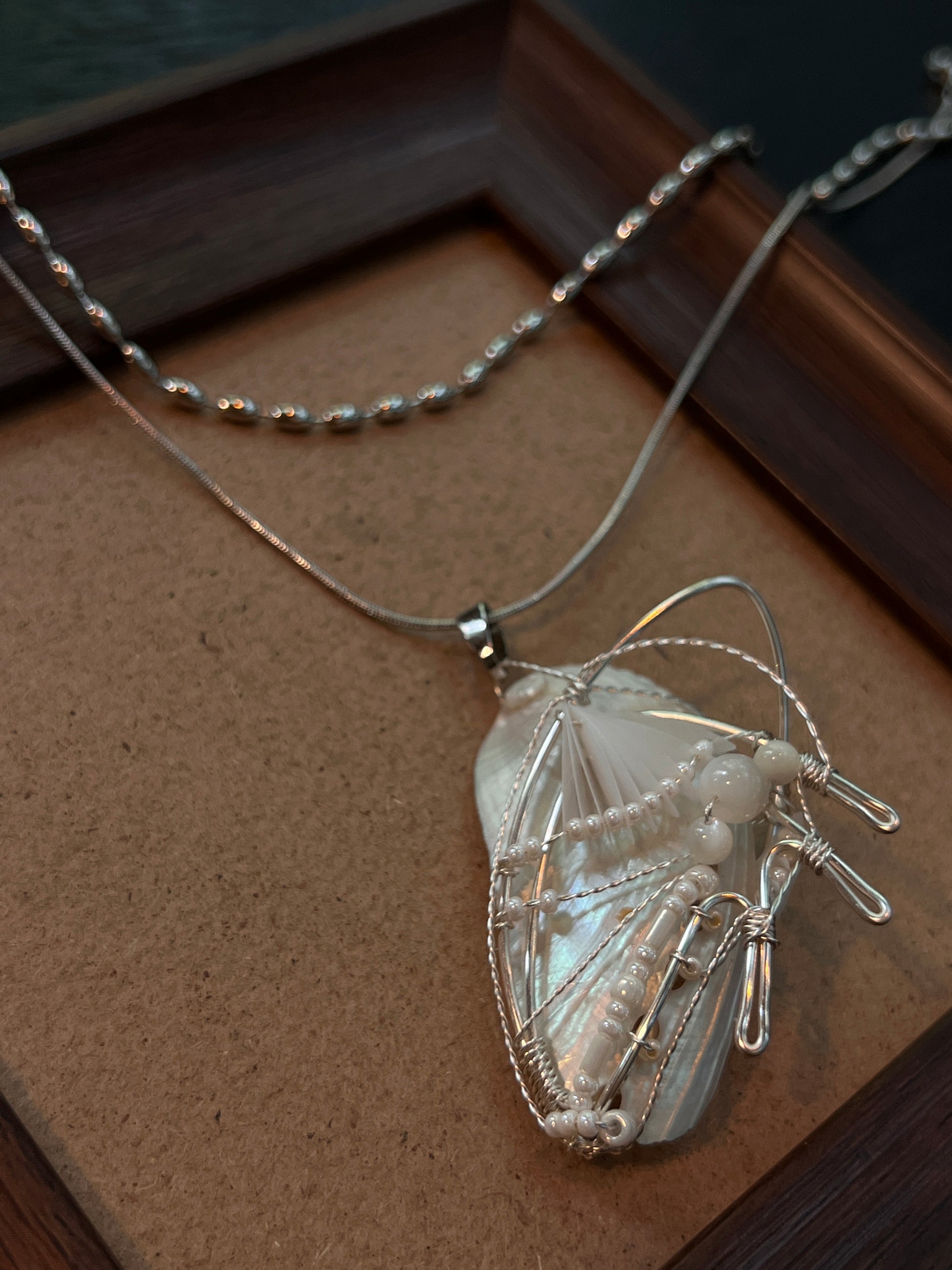 A complete set composed of Natural shell,copper wires wound around,and steel necklaces.