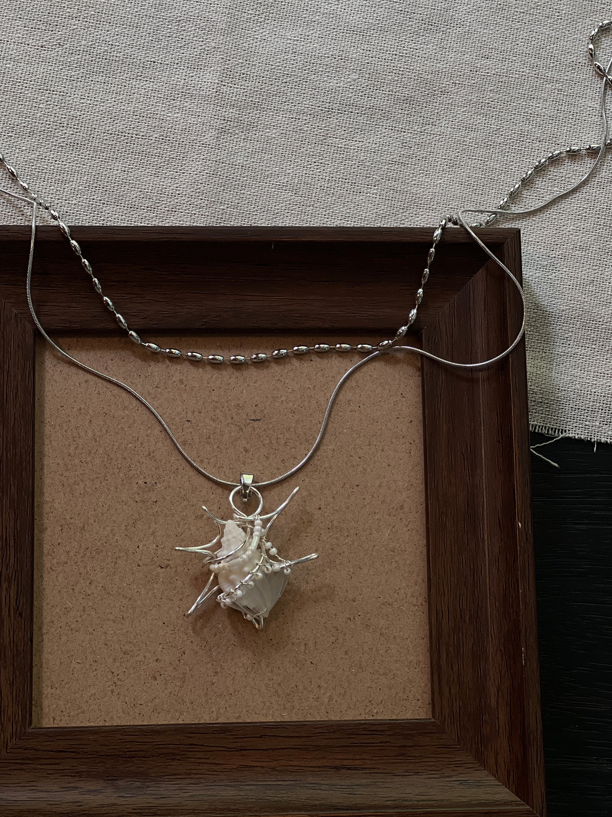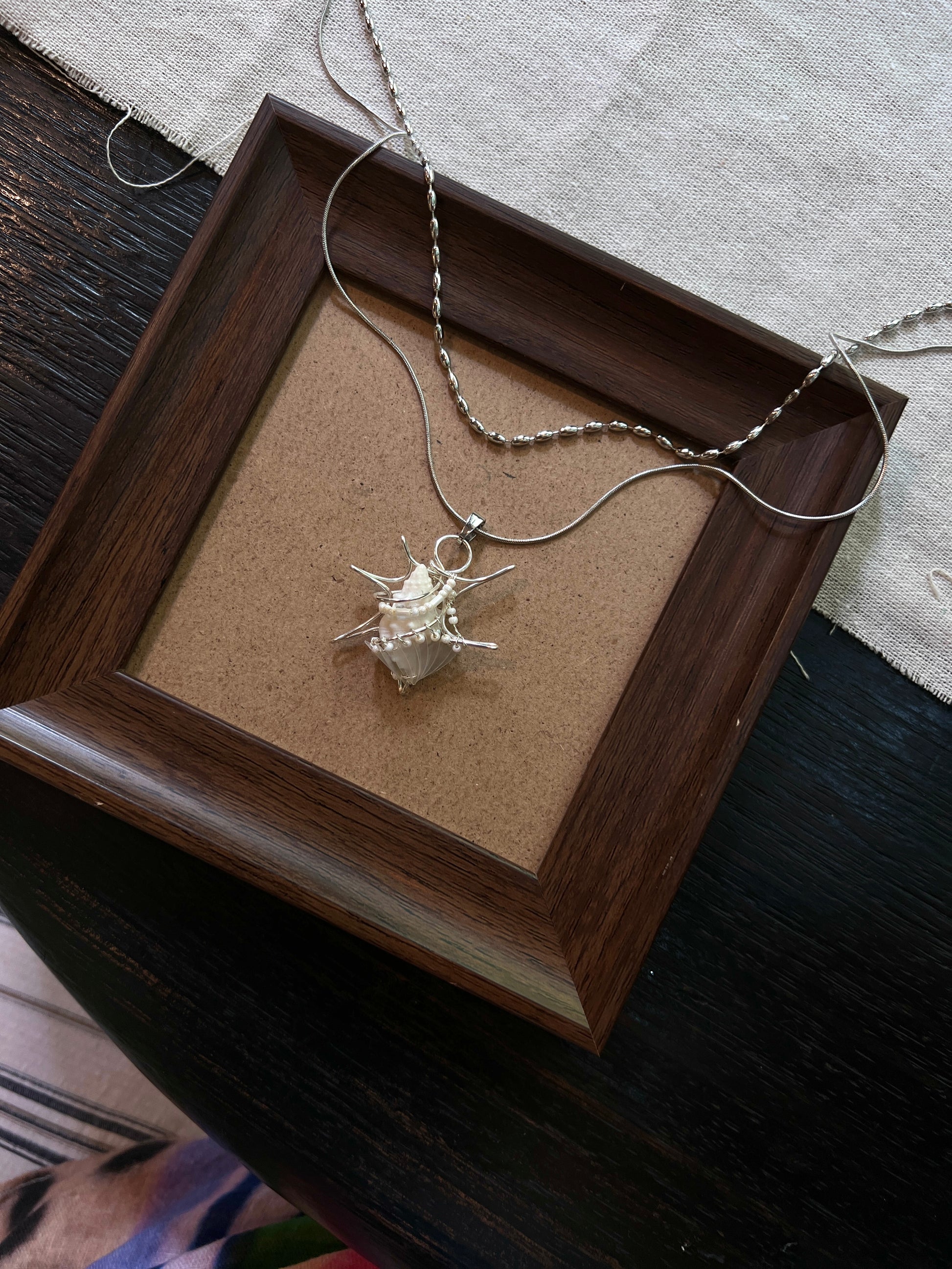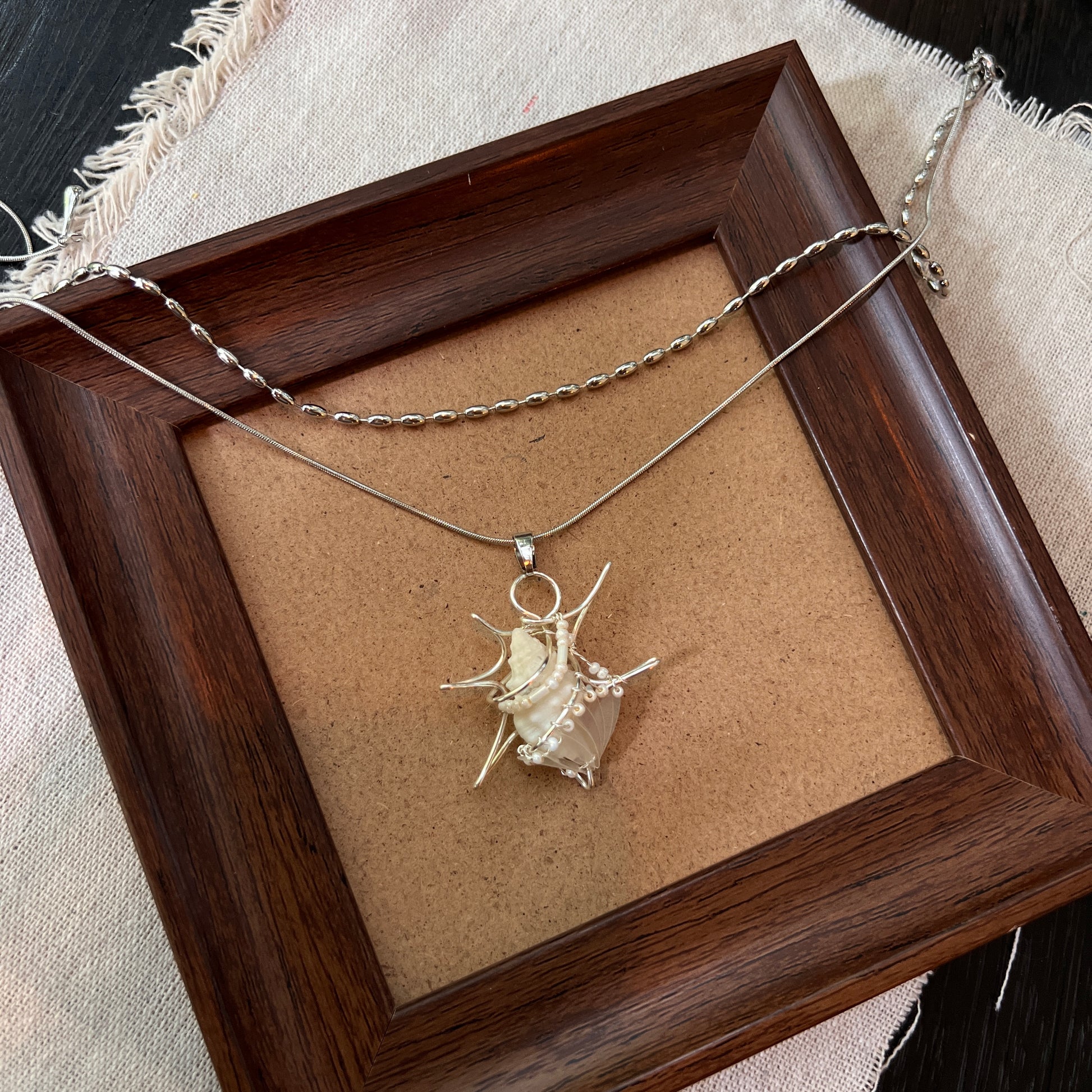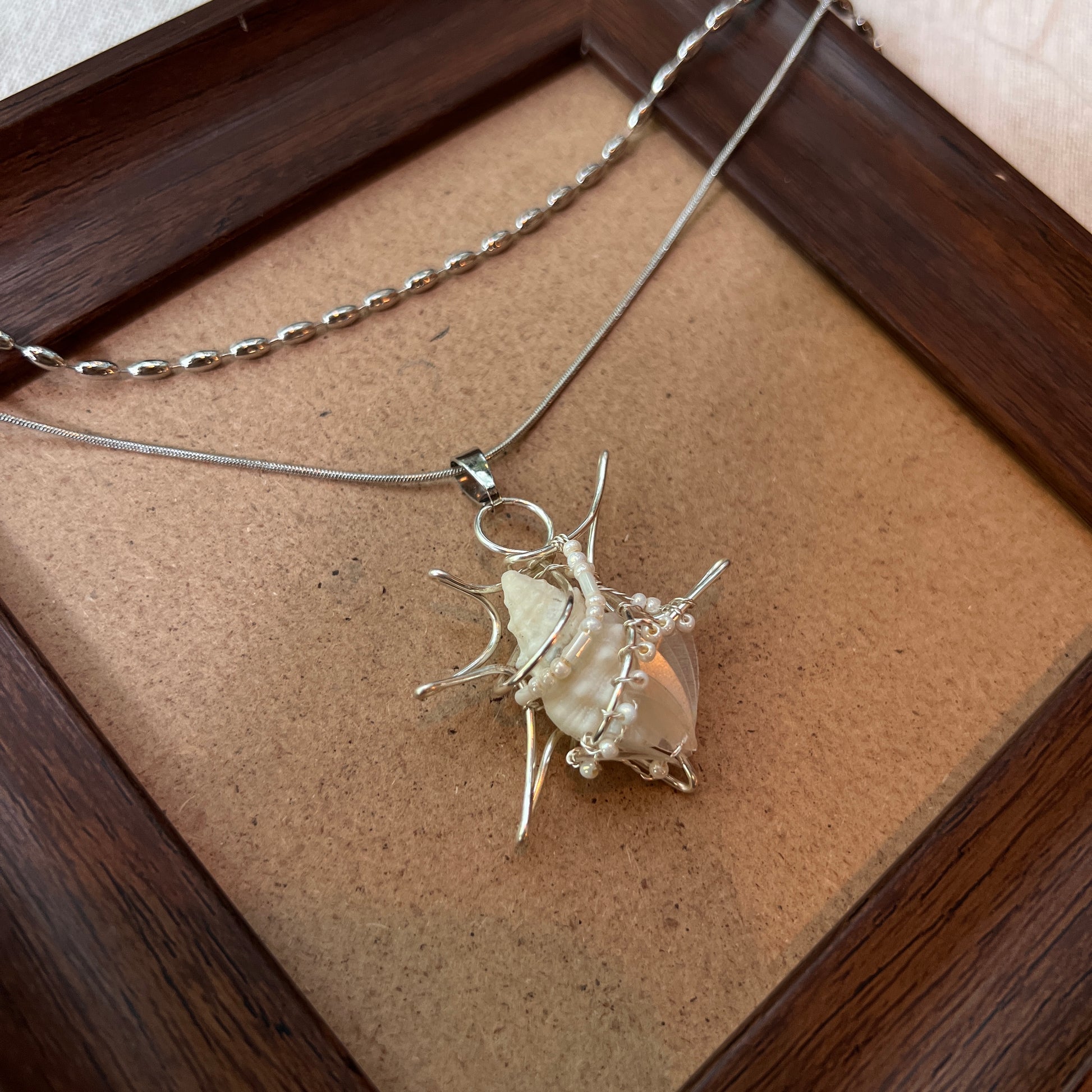 Unique handmade shell necklace pendant.