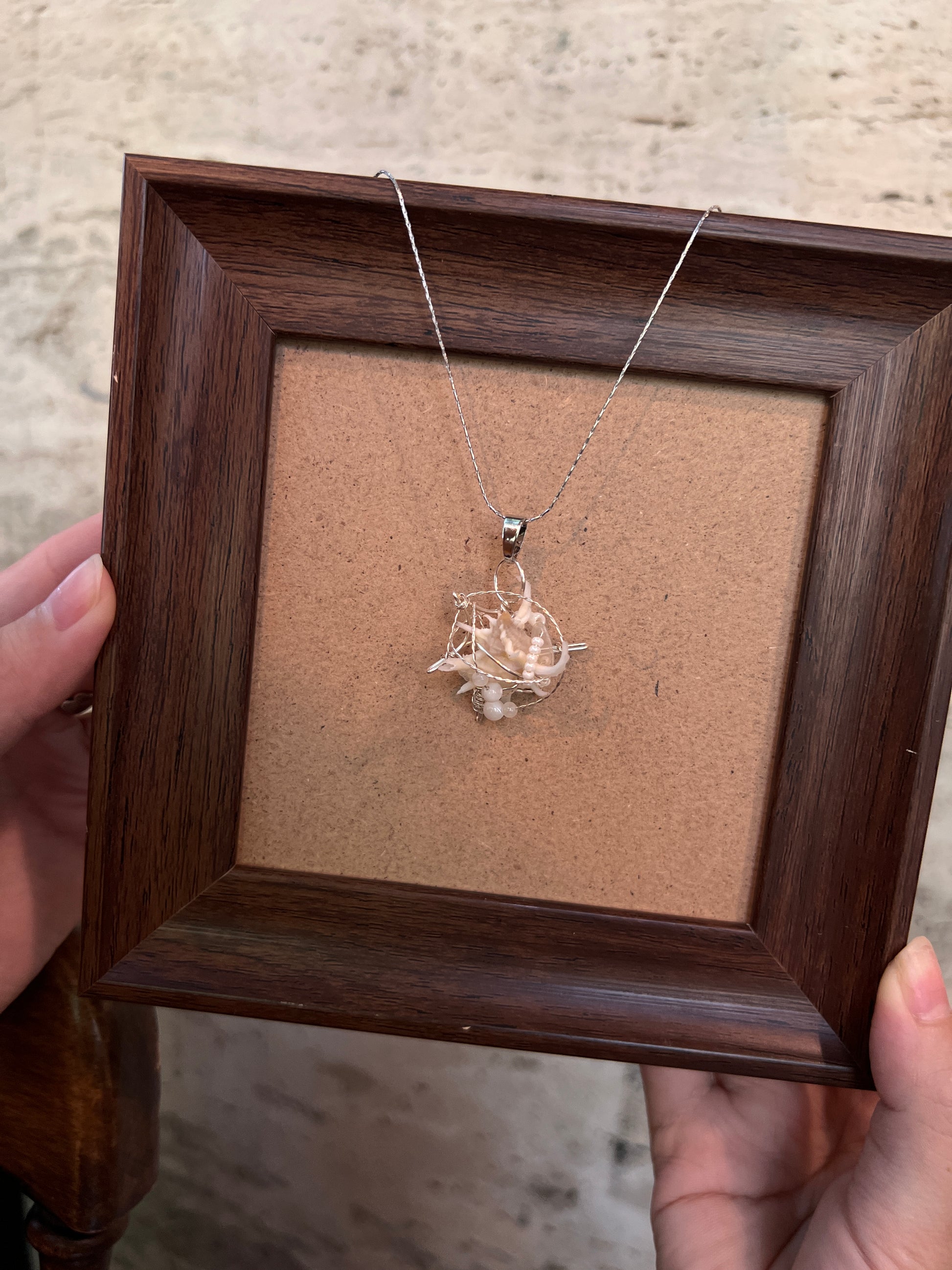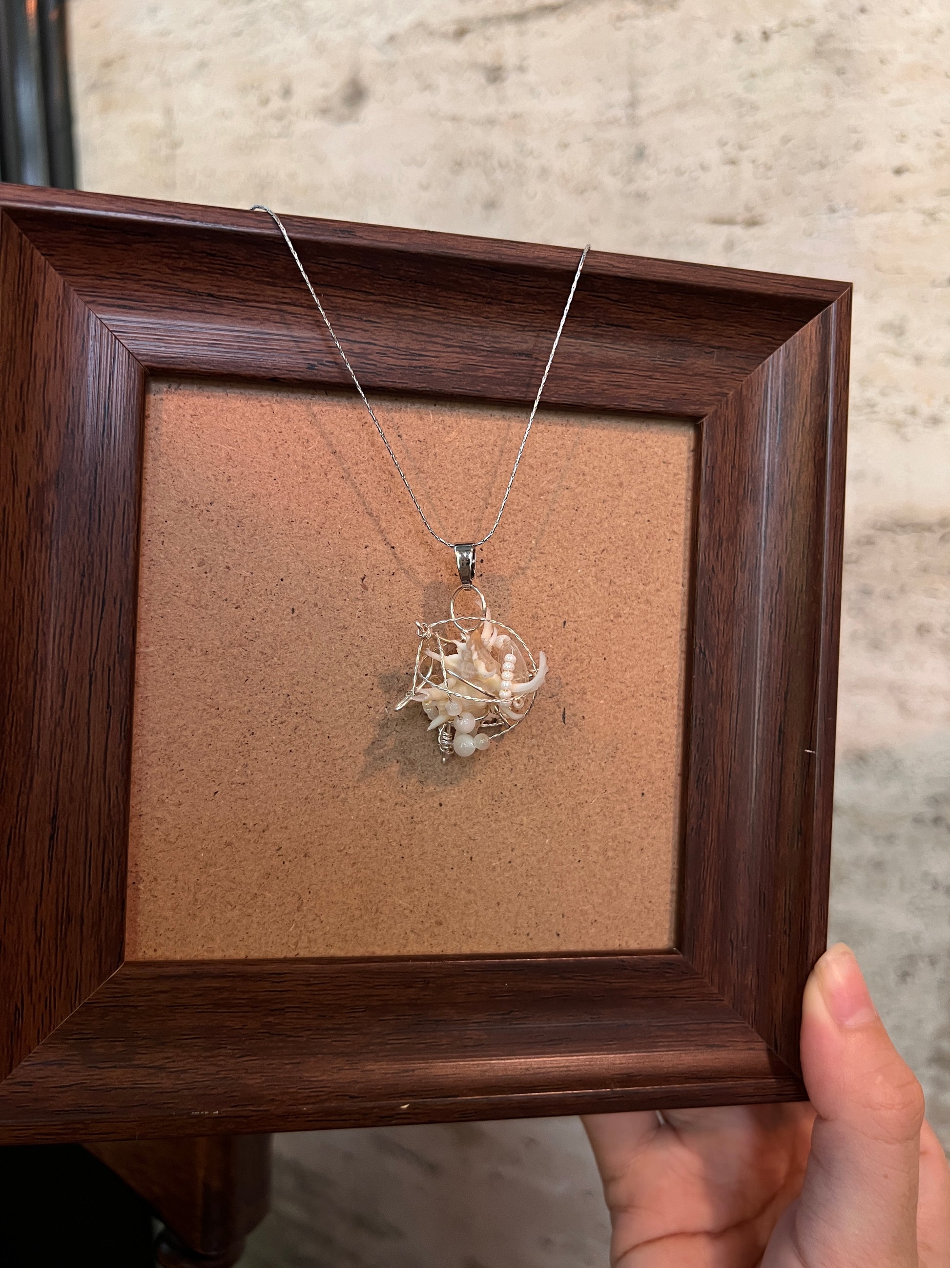 Unique handmade shell necklace pendant.